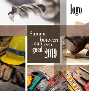 • Als vouw kalender. De achterzijde van de kaart is een jaarkalender, die handig op het bureau past.